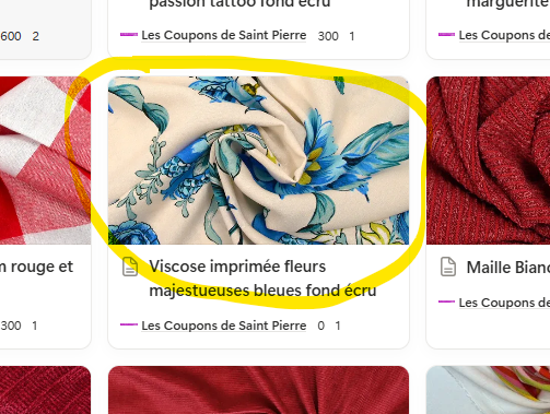Un petit coup d’oeil sur mon Notion Couture (là, j’apprécie d’avoir passé du temps à maîtriser cette application gratuite pour gérer mon stock de tissus qui est honteusement important).