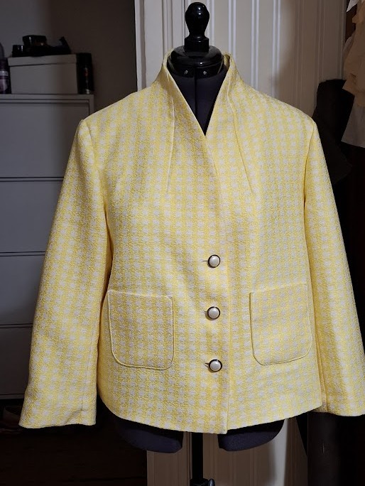 C’est une « petite » veste qui peut se porter comme veste tailleur ou en vêtement extérieur s’il ne fait pas froid.